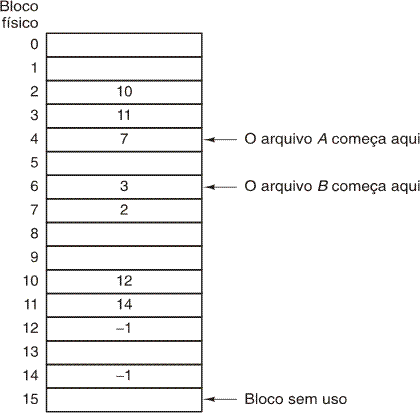 Armazenamento de um arquivo como uma lista encadeada de blocos de disco.
