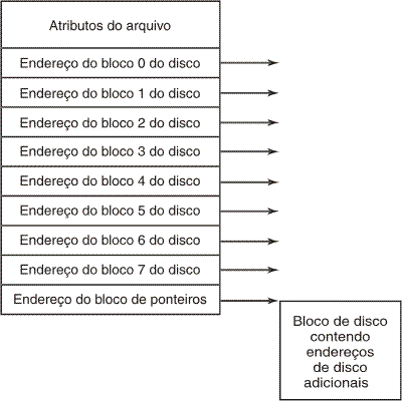 Solução: usar o último bloco do disco contendo mais endereços do próprio disco e a última entrada do i-node seria indicação para esse bloco.
