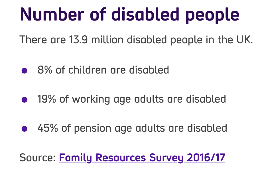 "1 in 5 people in the UK have a long term illness, impairment or disability"