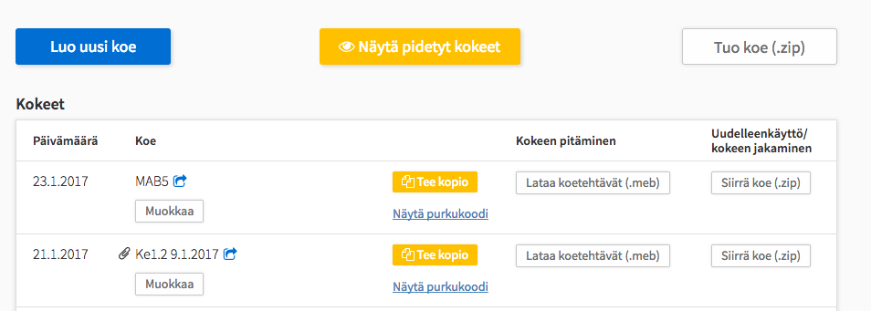 - Piilottaa pidetyt kokeet