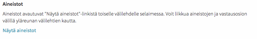 - Tehtävässä voi käskeä oppilasta menemään aineistoihin ja valitsemaan kyseinen liitetiedosto