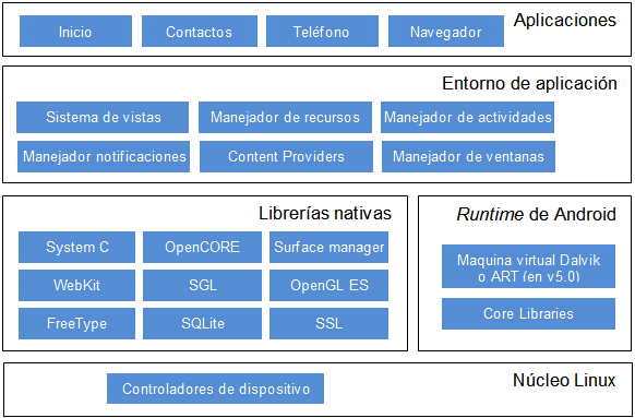 - A partir de Android 5.0 se reemplaza Dalvik por ART.