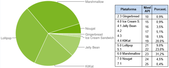 - Si usamos como versión mínima la 4.0 o 4.1 para desarrollar nuestro proyecto, dado que daríamos cobertura a más del 98% de los terminales.