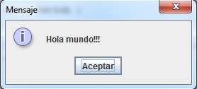 | showMessageDialog | Muestra un mensaje y espera que el usuario haga click en OK |