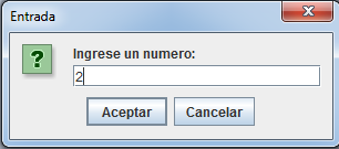 | showInputDialog | La cadena seleccionada o proporcionada por el usuario. |