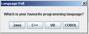 Las llamadas a showConfirmDialog y showOptionDialog proporcionan enteros que denotan el botón seleccionado.