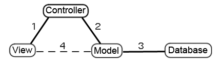 - 4. El controlador delega a los objetos de la vista la tarea de desplegar la interfaz de usuario. La vista obtiene sus datos del modelo para generar la interfaz apropiada para el usuario donde se reflejan los cambios en el modelo (por ejemplo, produce un listado del contenido del carro de la compra). El modelo no debe tener conocimiento directo sobre la vista. Sin embargo, se podría utilizar el patrón Observador para proveer cierta indirección entre el modelo y la vista, permitiendo al modelo notificar a los interesados de cualquier cambio. Un objeto vista puede registrarse con el modelo y esperar a los cambios, pero aun así el modelo en sí mismo sigue sin saber nada de la vista. Este uso del patrón Observador no es posible en las aplicaciones Web puesto que las clases de la vista están desconectadas del modelo y del controlador. En general el controlador no pasa objetos de dominio (el modelo) a la vista aunque puede dar la orden a la vista para que se actualice. Nota: En algunas implementaciones la vista no tiene acceso directo al modelo, dejando que el controlador envíe los datos del modelo a la vista.