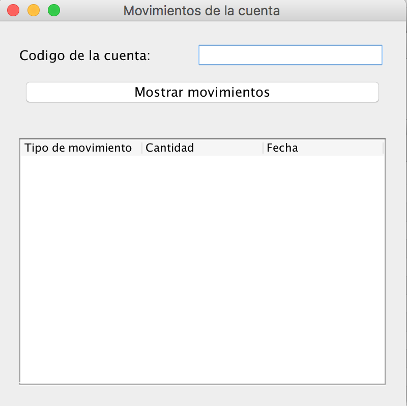 Crear una aplicación de escritorio que muestra la lista de operaciones realizadas sobre una cuenta y para ver algo nuevo los datos de la consulta se obtienen de dos tablas distintas usando un join, aunque esto es cosa del sql y para la parte java no hay nada distinto y vamos recorrer los datos del resulset obtenidos de la consulta para mostrarlos en una tabla.