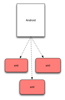 Todas estas estructuras XML serán leidas cuando la aplicación arranque …. pero como nos encontramos en una plataforma movil el trabajo con XML directo podría ser demoledor y lento .
