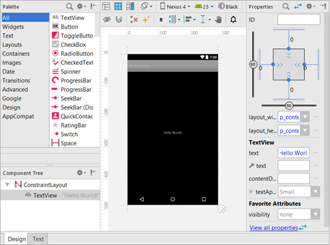 Dentro del RelativeLayout solo tenemos un elemento de tipo TextView. Este dispone de tres atributos.