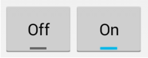 Un control de tipo ToggleButton es un tipo de botón que puede permanecer en dos posibles estados, pulsado o no_pulsado. En este caso, en vez de definir un sólo texto para el control definiremos dos, dependiendo de su estado. Así, podremos asignar las propiedades android:textOn y android:textoOff para definir ambos textos. Veamos un ejemplo a continuación.