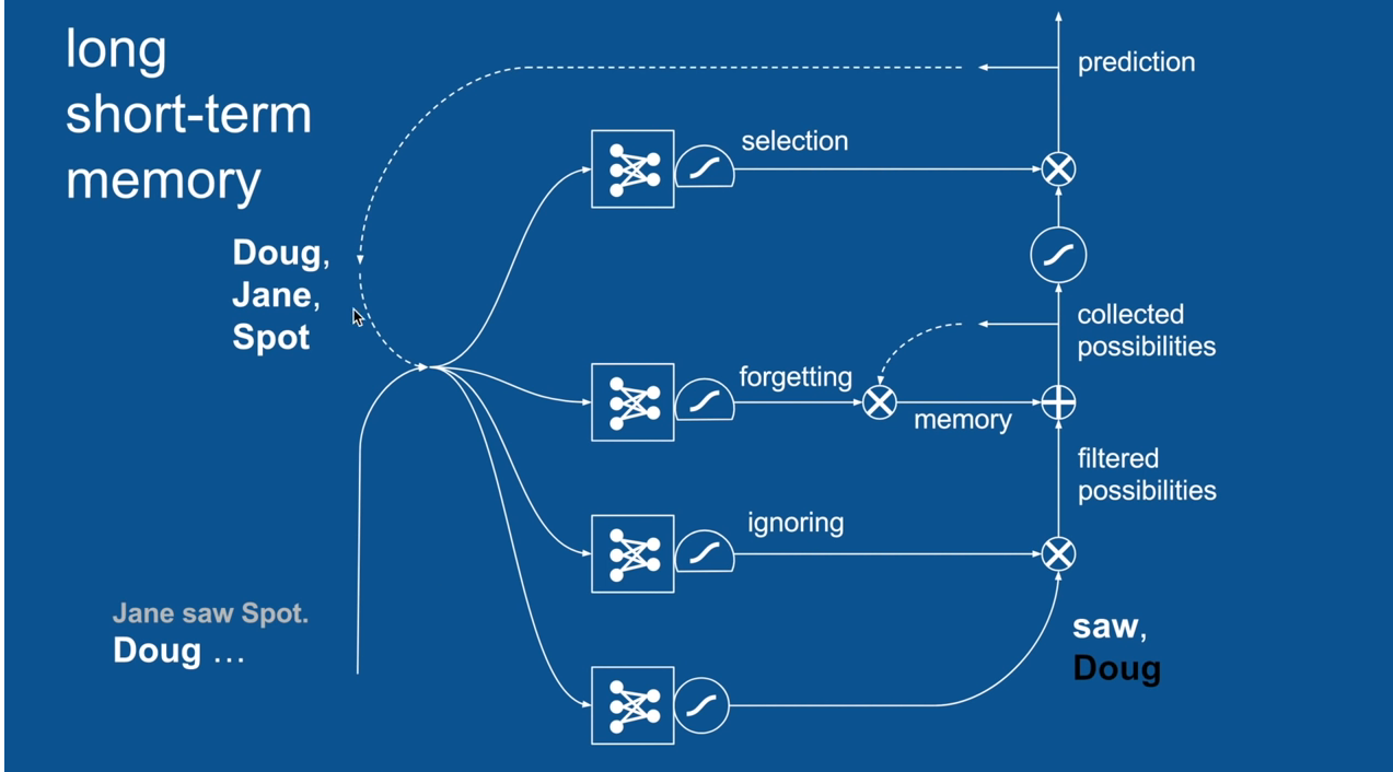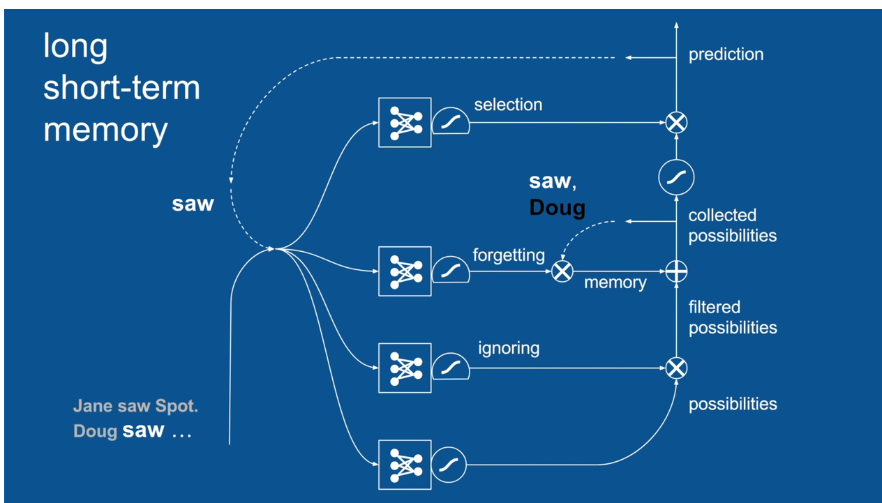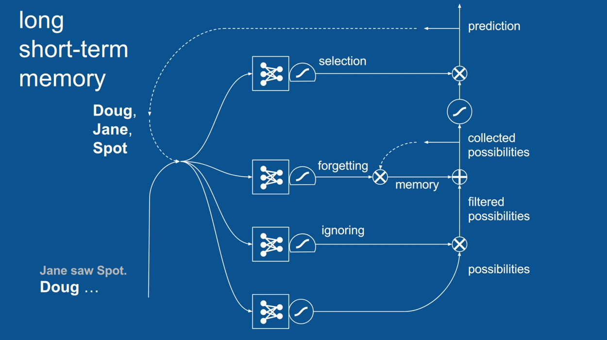 model.add(Dense(1))The network has a visible layer with 1 input, a hidden layer with 4 LSTM blocks or neurons, and an output layer that makes a single value prediction.
