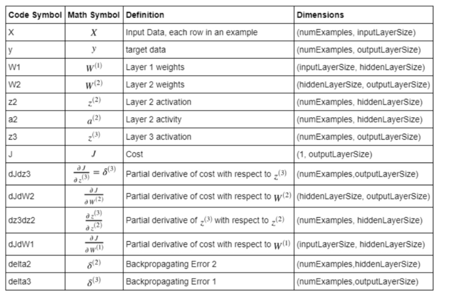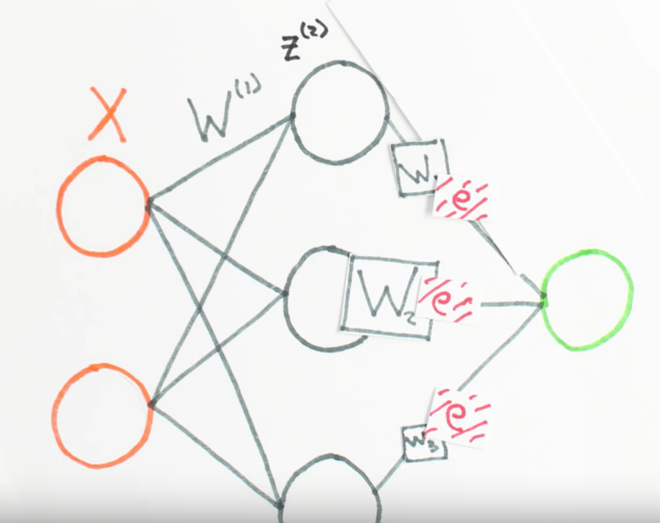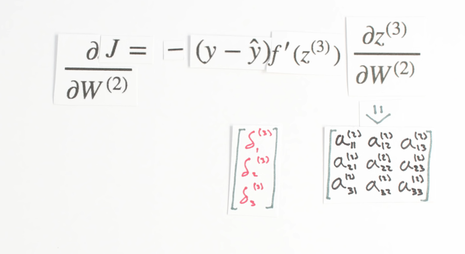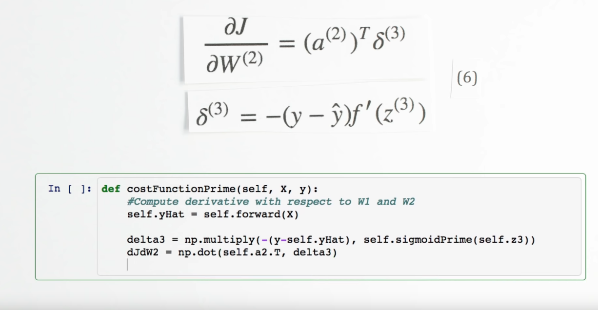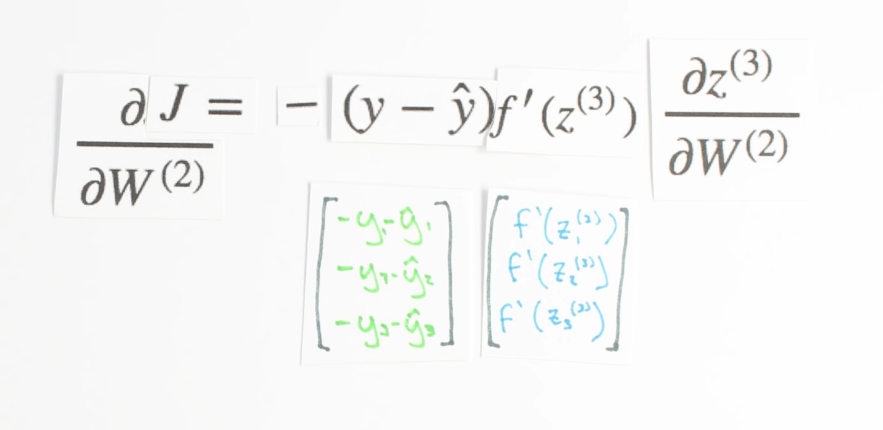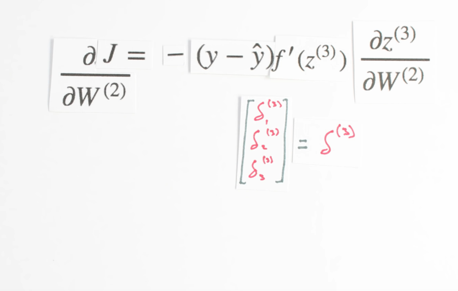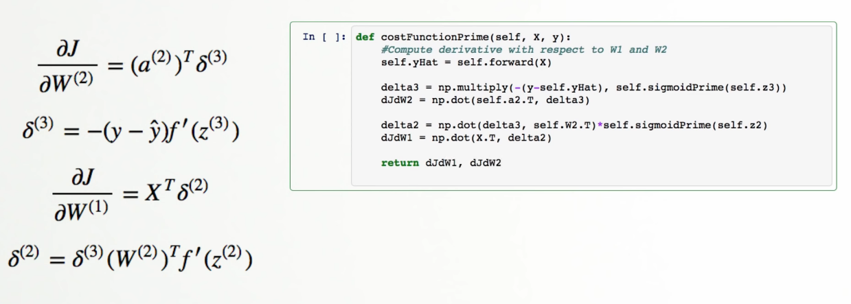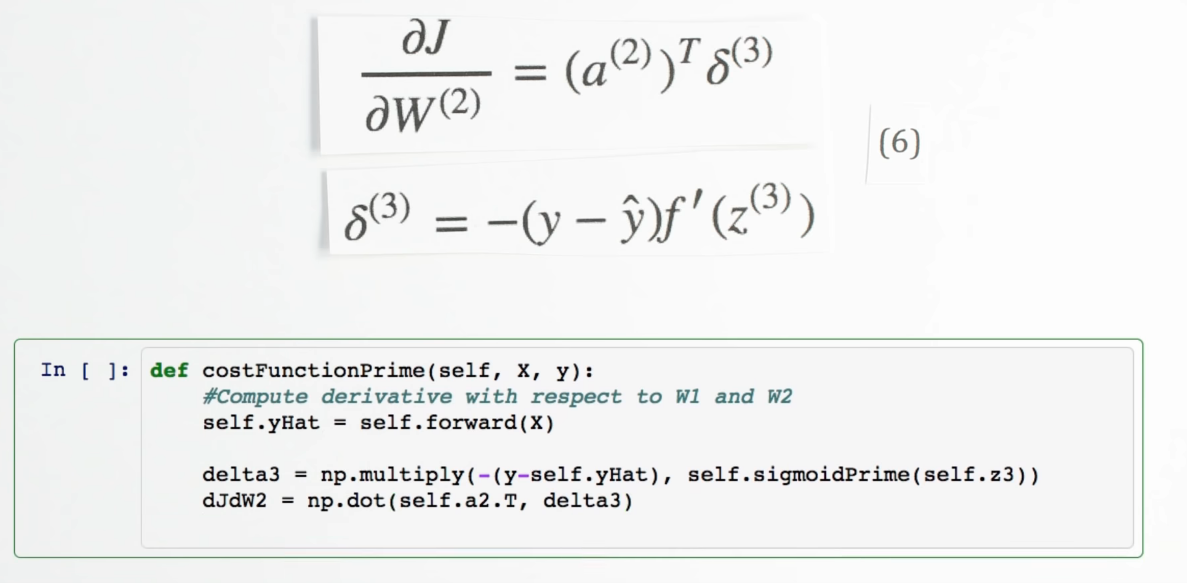 delta3 = np.multiply(-(y-self.yHat), self.sigmoidPrime(self.z3))