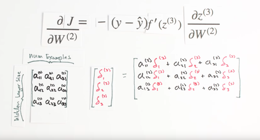 dJdW2 = np.dot(self.a2.T, delta3) + self.W2