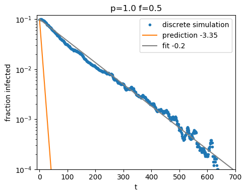 \(x(t) = c\tau \exp( -(1-p + r\tau) t/\tau - \frac{p}{f c\tau} \frac{1}{1- f \int_0^\infty e^{f ct'} x(t') \frac{dt'}{\tau}} (e^{f ct}-1) )\)