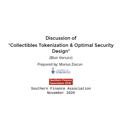 Discussion of "Collectibles Tokenization & Optimal Security Design" at the 60th SFA Meeting (November 2020)