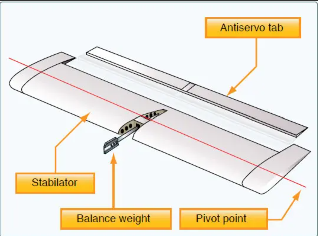 Anti-servo tabs — move in the same direction as the trailing edge of the stabilator.