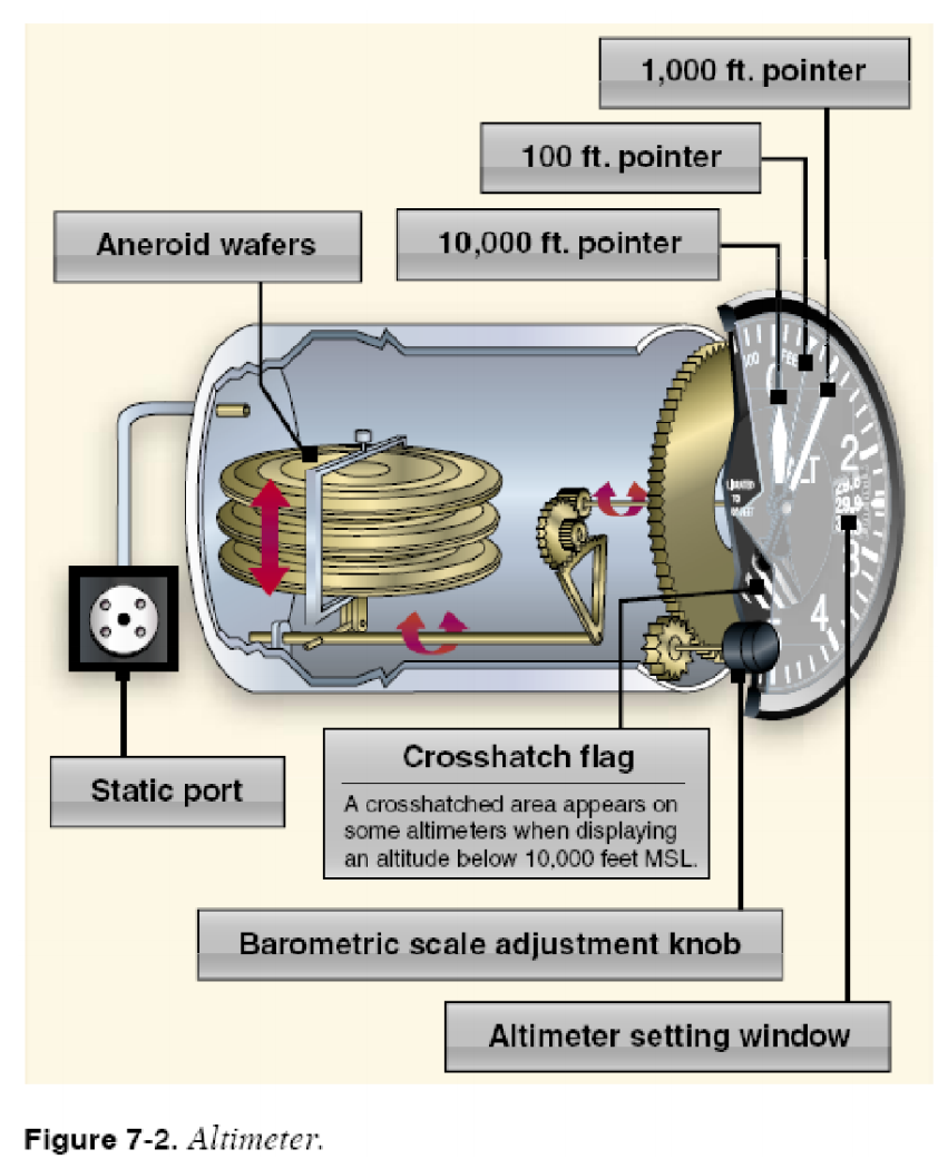 The aneroid expands or compresses which moves gears to give a reading on the indicator face