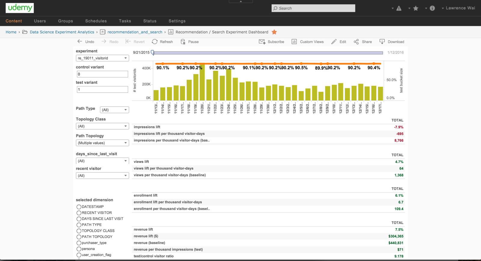 This table provides a way to analyze course performance across several metrics over a 90-day time period. A feature hypercube is created from this table, which is then used for the experiment hypercube.