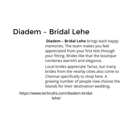 Diadem – Bridal Lehe brings back happy memories. The team makes you feel appreciated from your first test through your fitting. Brides like that the boutique combines warmth and elegance. Local brides appreciate Tariaz, but many brides from the nea