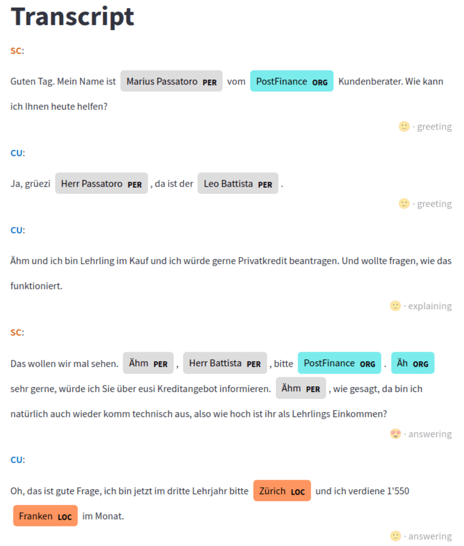 - No real data from the customer calls available, because of data protection