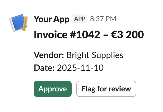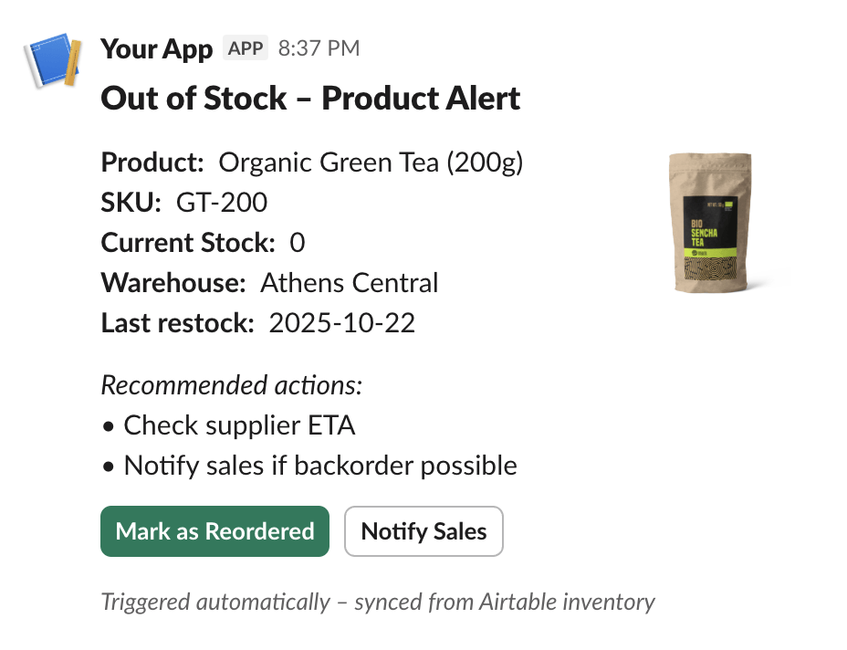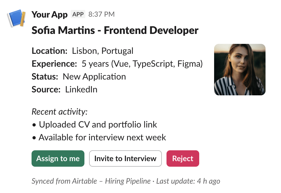 - Real-time performance: by effectively storing metadata (airtable record id - slack message id pairs), we can eliminate middle steps