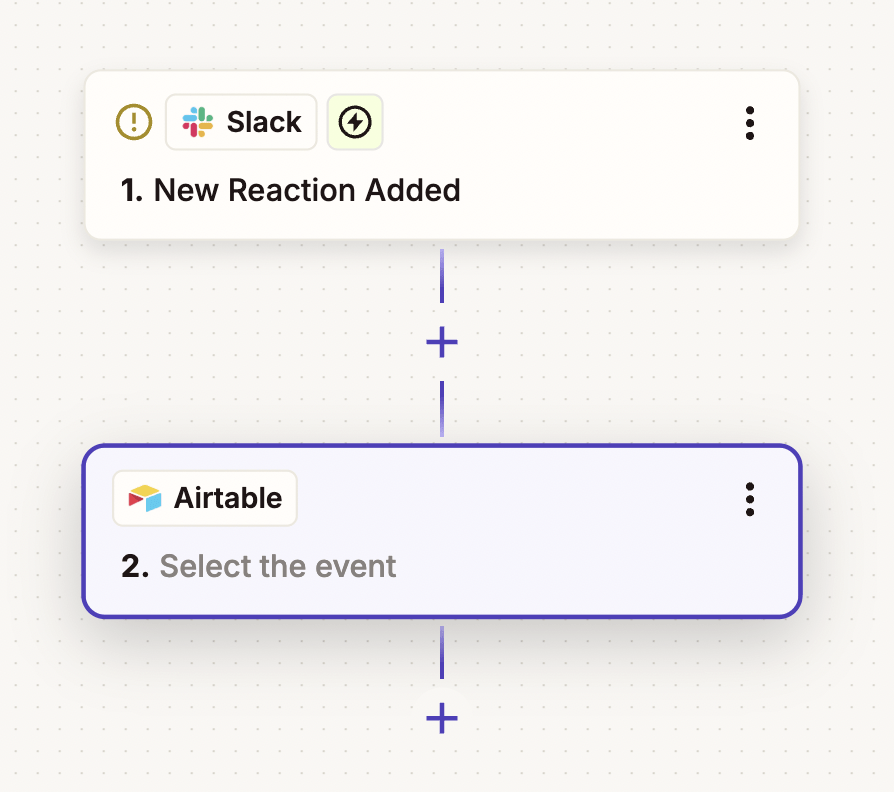 Different case: Airtable sends message. Slack workflow triggers on emoji reactions.
