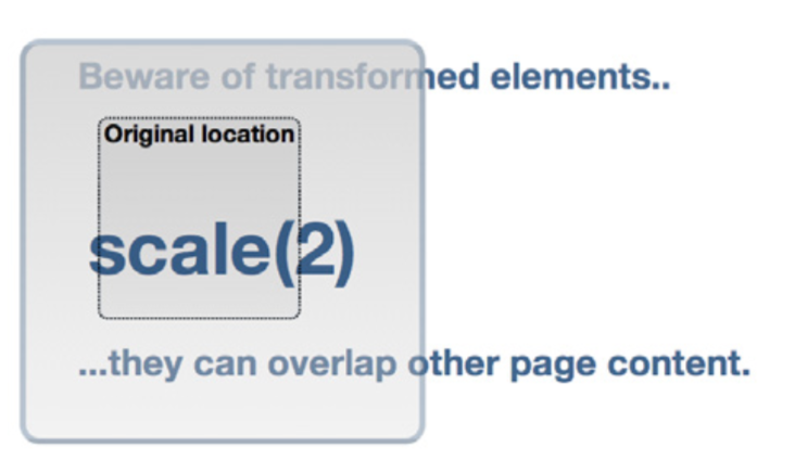 transform: scale(2);Didinimas skaičiuojamas dauginant dabartinį elemento dydį iš nurodyto funkcijoje scale. Galima naudoti ir 0.5, jeigu norima padidinti pusę karto.