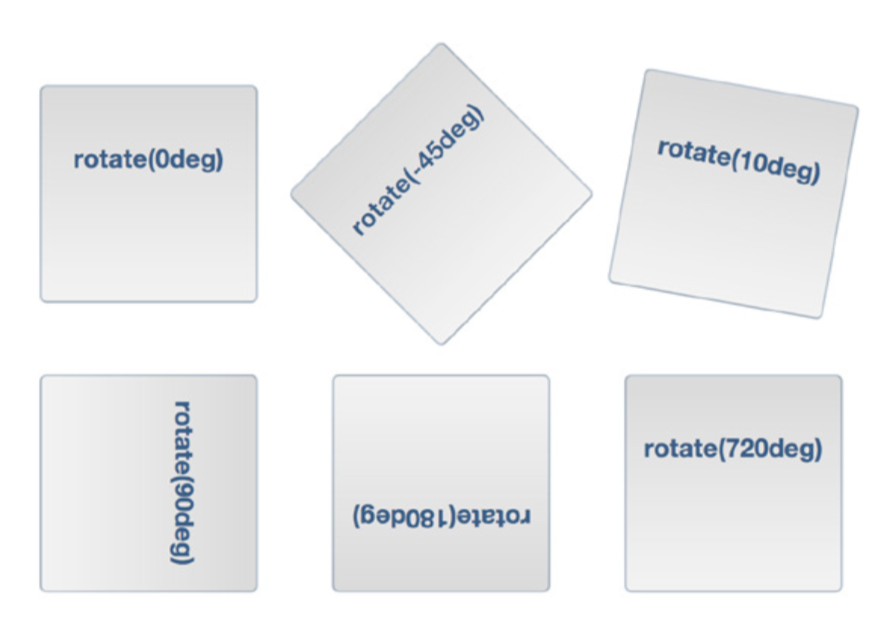 Elemento pasukimui naudojama rotate reikšmė su laipsniais.
