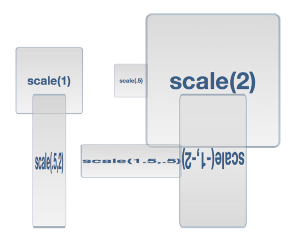 Scale leidžiai didinti arba mažinti elementą. Jeigu reikia elementą padidinti du kartus, naudojame: