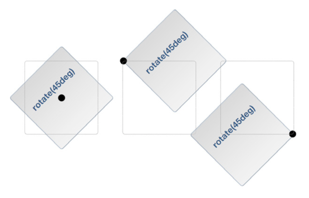 transform: skew(45deg,0deg) scale(.5) translate(400px,500px) rotate(90deg);Yprastai, kai elementui taikoma transform ypatybė imamas elemento centras, transformacijos taškui nustatyti.