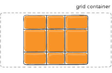 Blokas tampa grid konteineriu viduje esantiems child elementams (1 lygio).