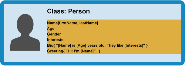 };Jis sukuria naują objektą, kuris priskiriamas person1
