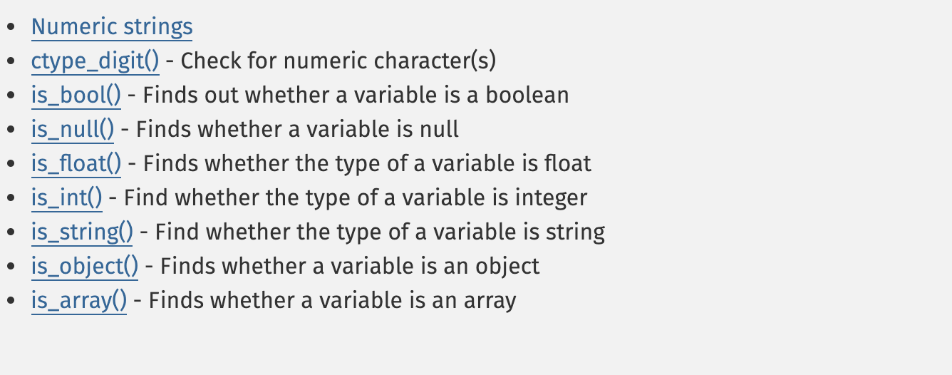echo is_numeric(6); // trueFunkcija var_dump išveda informaciją apie kintamąjį