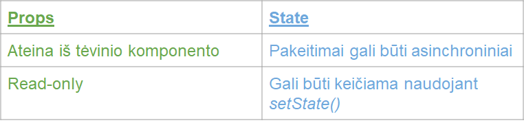 Jeigu norime naudoti state komponente yra būtina naudoti construct() metodą, kuris naudodamas super() paveldi reikiamus metodus ir ypatybes iš React.Component.