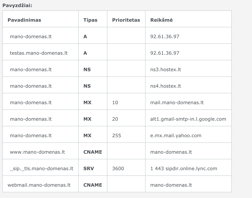 Pavyzdžiui, domeno vardas .lt identifikuoja aukščiausio lygio domeną.