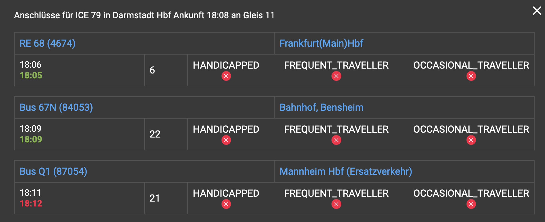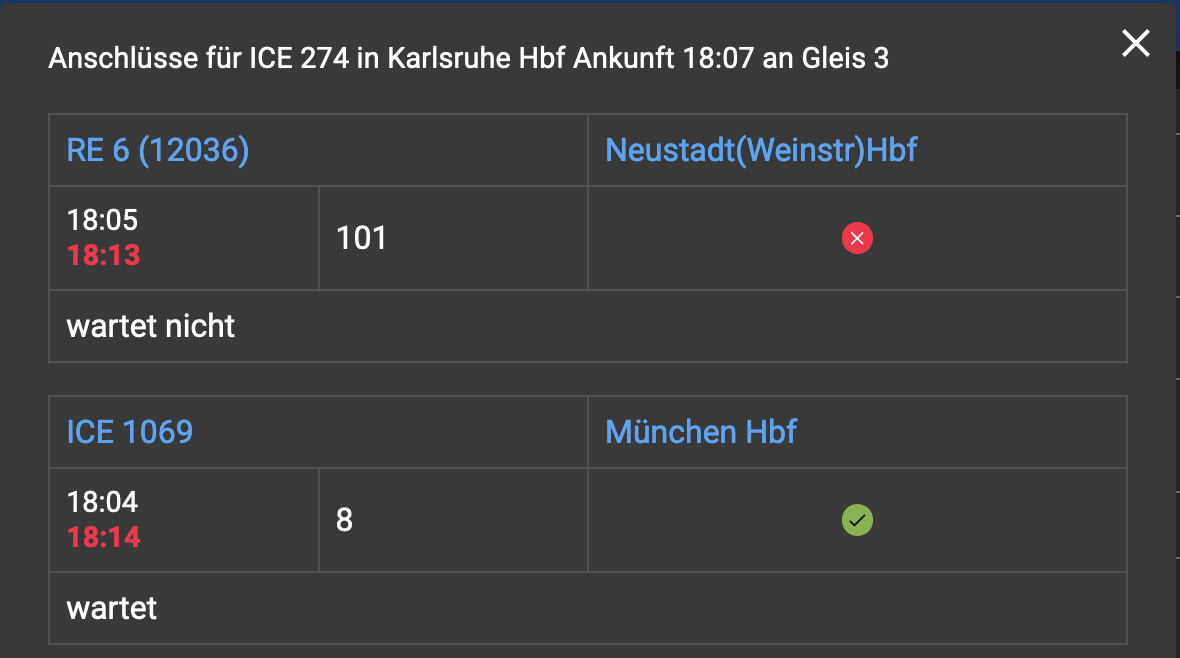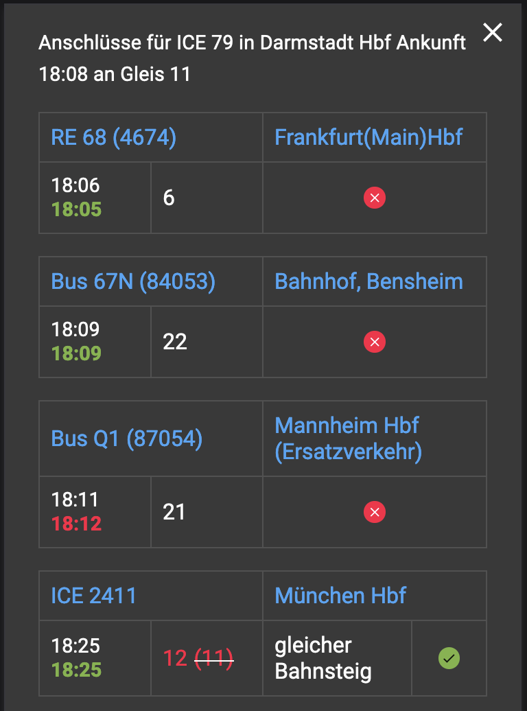 Ich nutze die Website meistens um schnell Gleiswechsel zu prüfen da unsere internen Daten nicht immer mit den Daten draußen vor Ort übereinstimmen