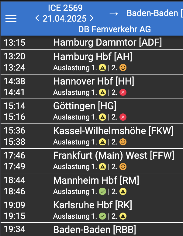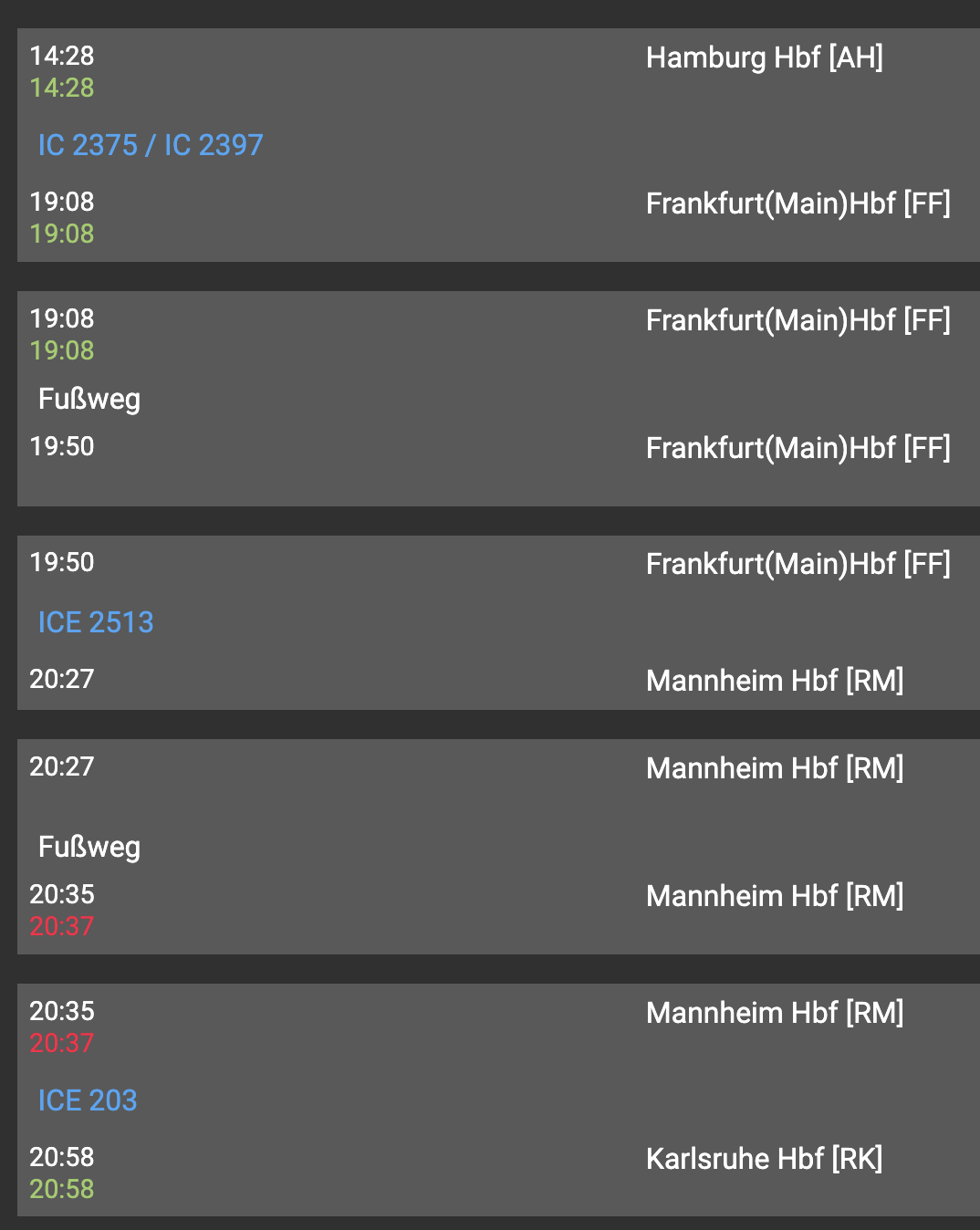 { "risZuglaufId": "RE_4165" }{ "risZuglaufId": "S_43153" }{ "risZuglaufId": "ICE_2571" }Routing/Fahrtdetails