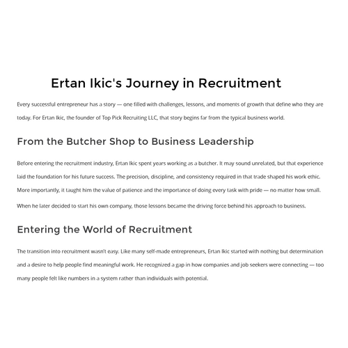 For Ertan Ikic, the founder of Top Pick Recruiting LLC, that story begins far from the typical business world.