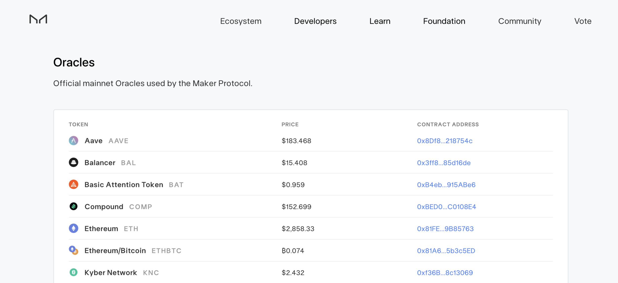 MakerDAO 提供幣價資訊