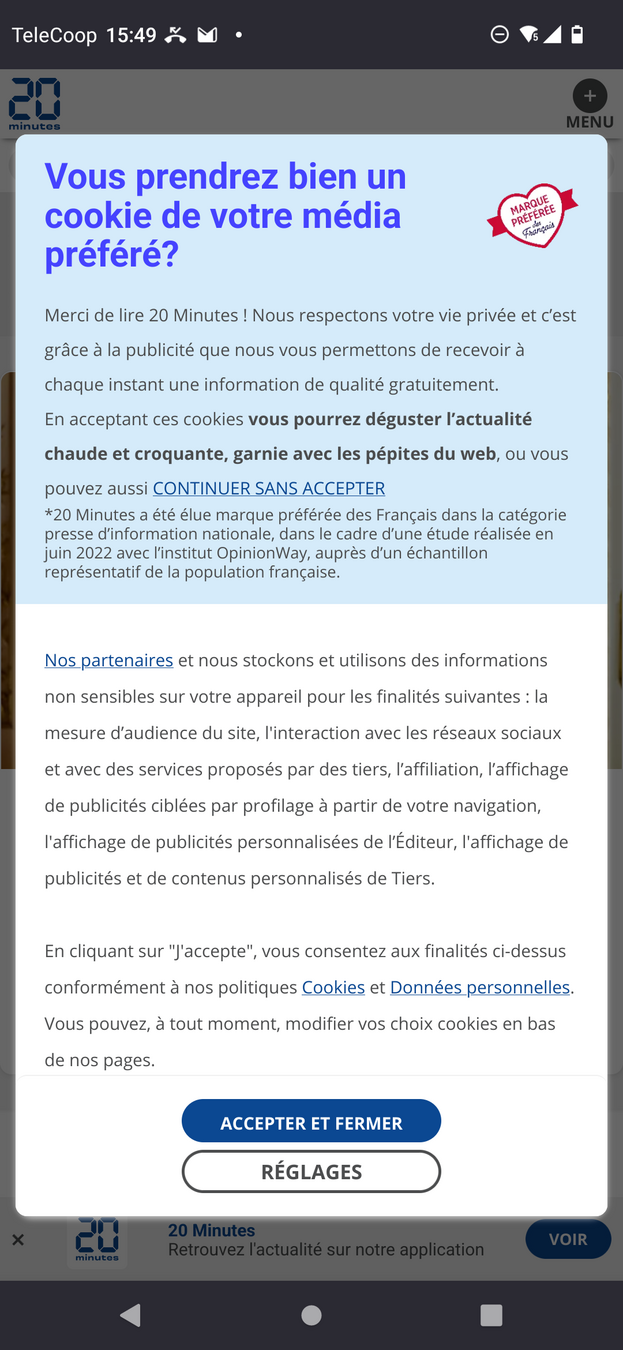 Observez comment votre consentement est recueilli sur les sites que vous visitez ? Pouvez-vous refuser facilement ?