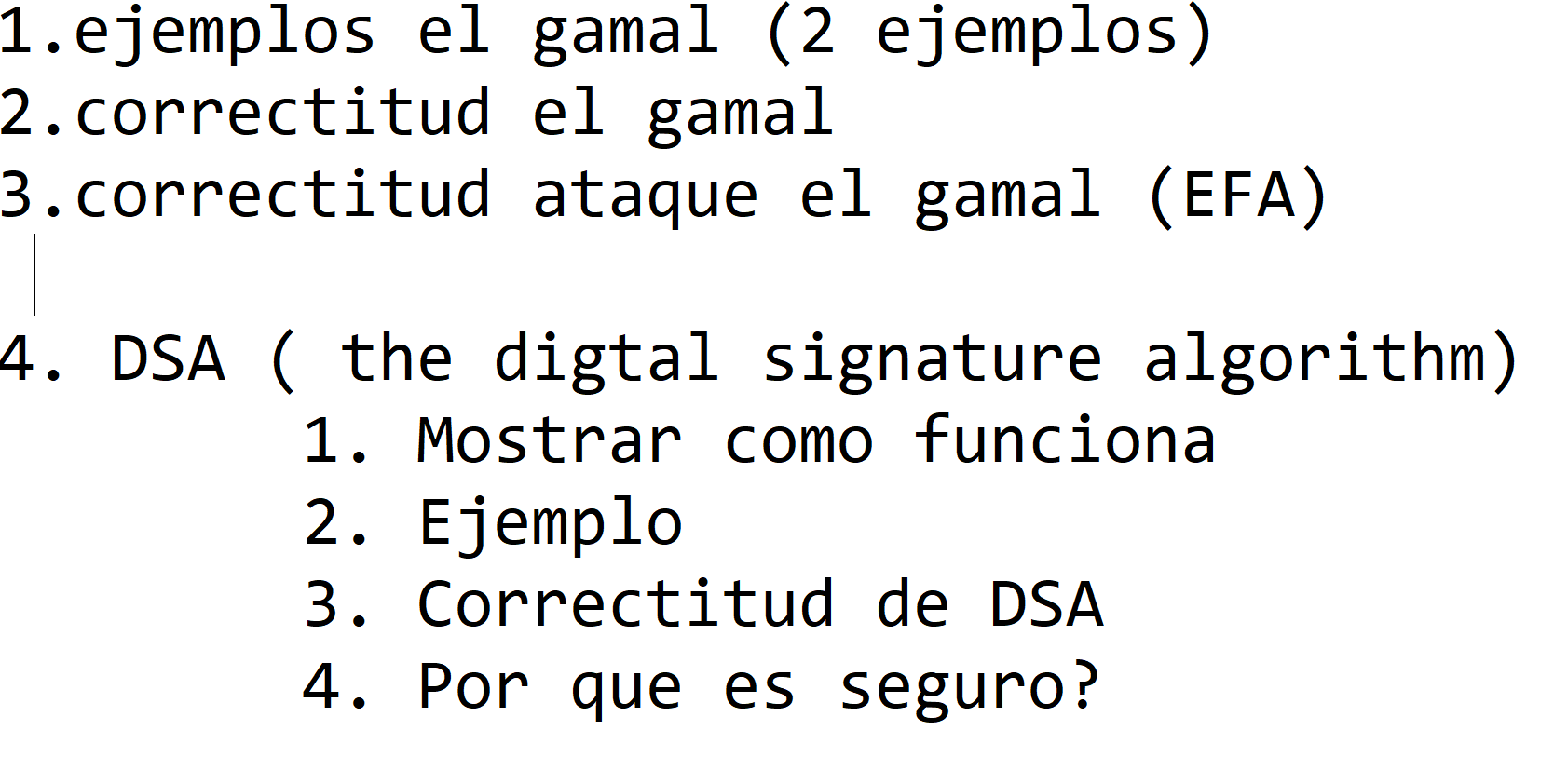 Se quiere probar que si Alice tiene la llave publica de Bob y el mensaje es correcto con respecto a la firma (r,s) Alice es capaz de comprobar la firma del mensaje