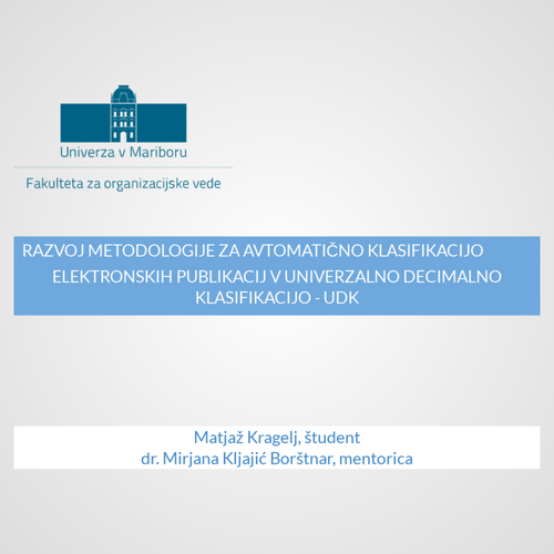 RAZVOJ METODOLOGIJE ZA AVTOMATIČNO KLASIFIKACIJO ELEKTRONSKIH PUBLIKACIJ V UNIVERZALNO DECIMALNO KLASIFIKACIJO - UDK