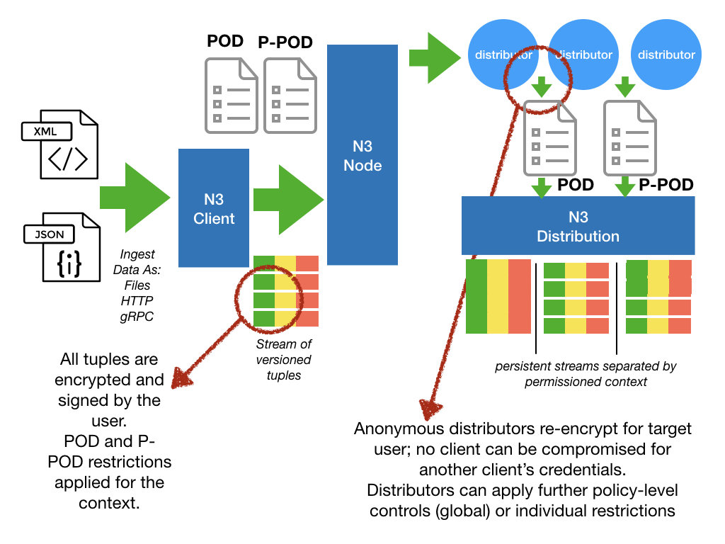 - N3 is an implementation of a candidate architecture for secure data-sharing, streaming data management and multi-standards support