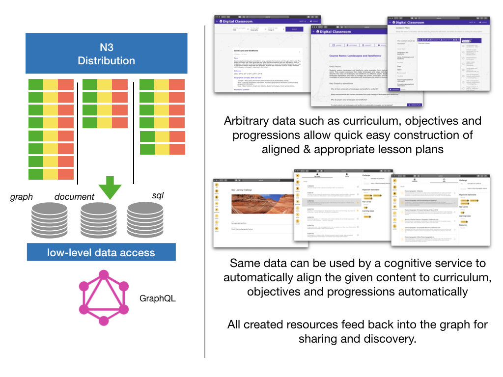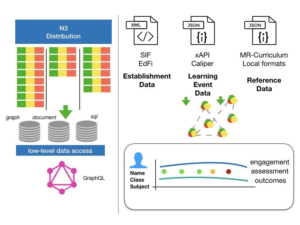 N3 nodes can be run at a school level to allow interoperability and aggregation of data for analytics