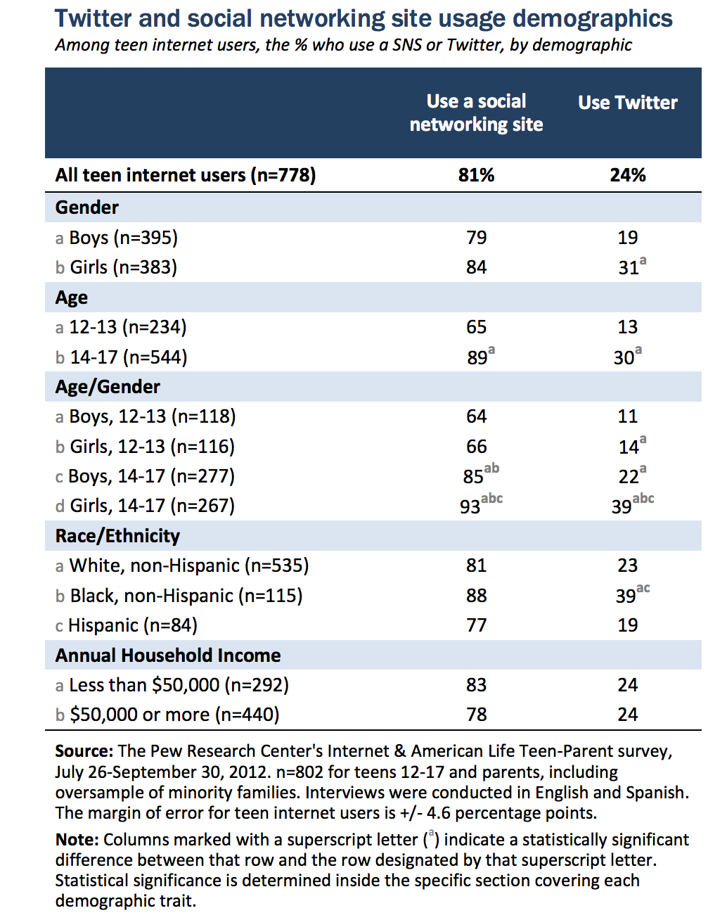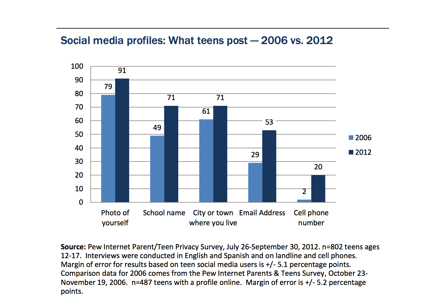 Sources: http://www.pewinternet.org/files/2013/05/PIP_TeensSocialMediaandPrivacy_PDF.pdf