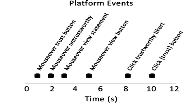 trust decision: {tid, lrt, tr}, where tid is the task id, lrt is trustworthiness captured by the Likert scale and tr is a Boolean indicating trust (true) or do not trust (false).