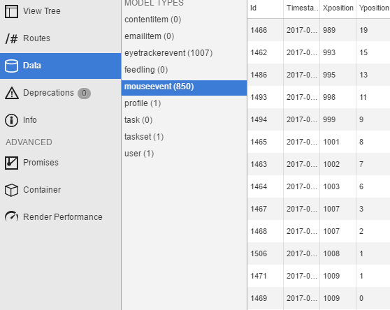 Heatmap and event tracing component output allows researchers to reconstruct subject sessions.