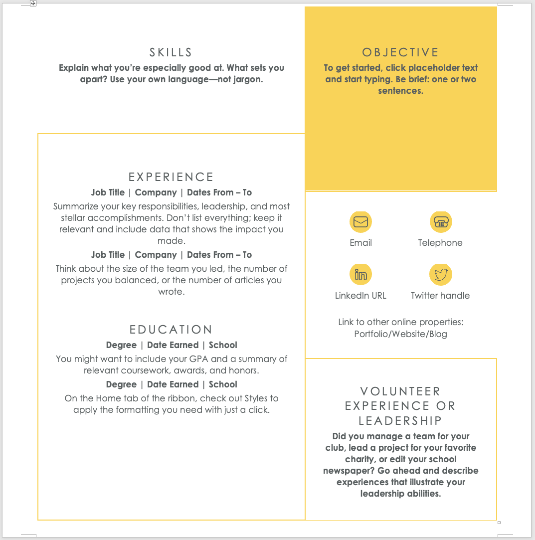 ResumeTemplateand gave it to everyone in the class - You can edit the content within each section of the template to match your personal information