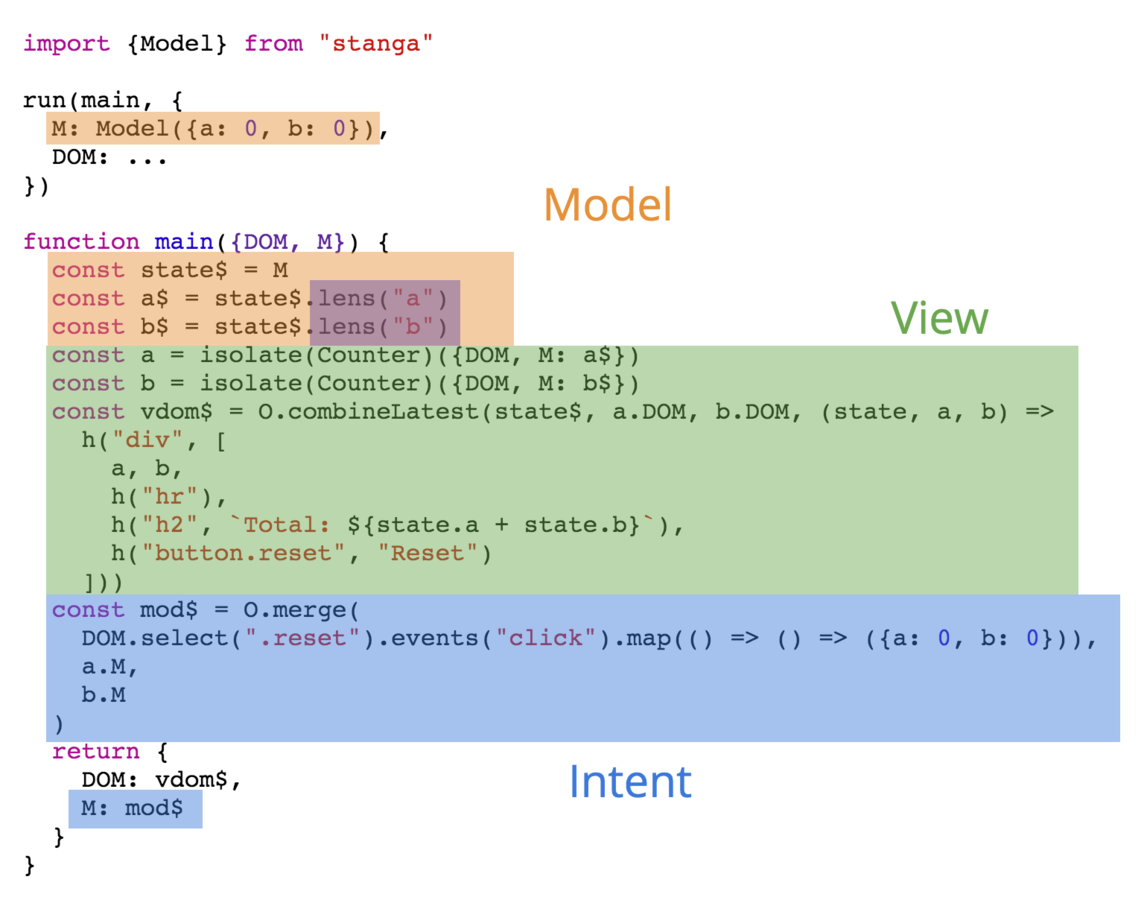 const b = isolate(Counter)({DOM, M: b$})